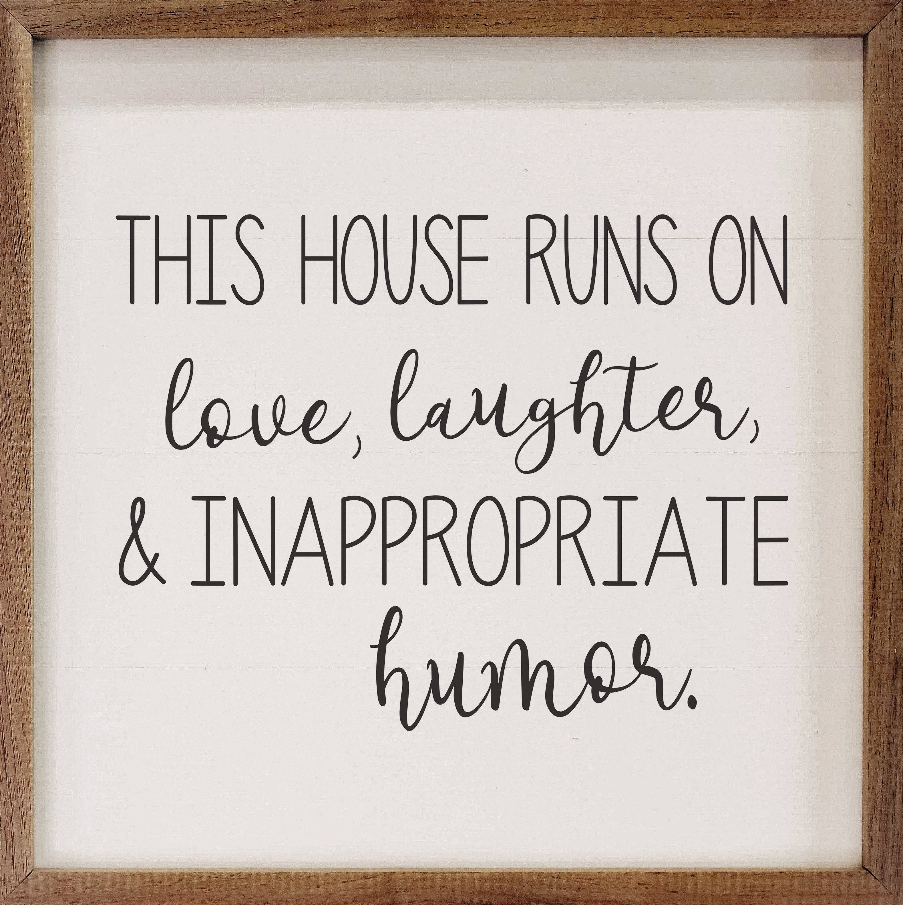 This home is built on love & profanity. Funny Home Decor All our signs are build into a wooden box frame with a rustic touch. Signs are hung directly off the frame or sit perfectly on a desk. Size: 10 Inches Wide - 10 Inches Tall - 1.625 Inches Deep Keywords- Farmhouse, Vintage Home Decor, Rivers, Wall Décor, Rustic Home Decor, Wall Art, Décor, Modern Home Décor, Wholesale, insider free shipping, high sell through, creative brands, Summer Decor, Funny Decor, Farmhouse