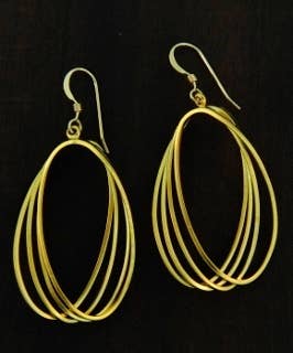 These stunning gold abstract aluminum wire earrings are a true statement piece. Hand crafted one pair at a time, each pair is unique! Made from anodized aluminum and sterling silver, they are light weight, non tarnishing and hypo allergenic. Each pair will measure about 3 /12 inches.
