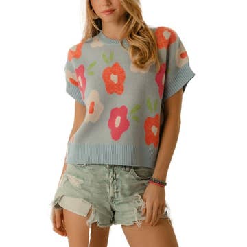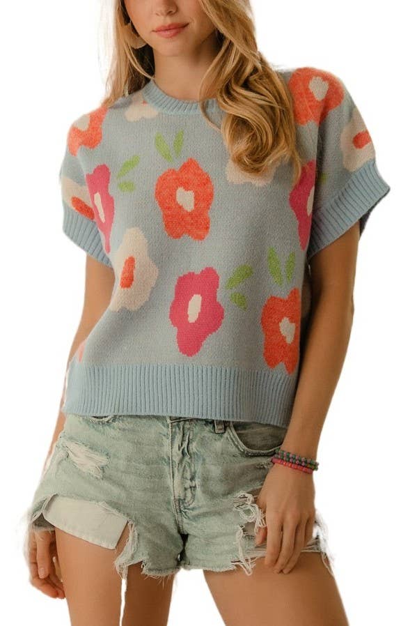Blue Garden Floral Knit Top β Ready to Ship