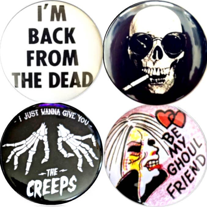2.25" round pinback button. Hand pressed by me. No packaging.