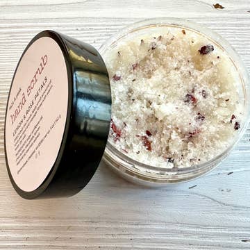 SKU: 1001 Made in United States Beauty Concerns: Exfoliating Fragrance Notes: Coffee, Lavender, Lemon, Peppermint, Rose, Sage, and Vanilla Ingredients: Ingredients: Lavender Salt Scrub: Himalayan Pink Salt, Coconut Oil, Jojoba Oil, Lavender Buds, & Lavender Essential Oil Peppermint Vanilla Sugar Scrub: Raw Sugar, Coconut Oil, Jojoba Oil, Mint Leaves, Peppermint Essential Oil, & Vanilla Essential Oil Hibiscus Rose Salt Scrub: Himalayan Pink Salt, Coconut Oil, Jojoba Oil, Hibiscus Petals, & Rose Essential Oil Espresso Brown Sugar Scrub: Brown Sugar, Coconut Oil, Jojoba Oil, Coffee Grounds & Vanilla Essential Oil Lemon Sage Sugar Scrub: Raw Sugar, Coconut Oil, Jojoba Oil, Sage, Lemon Peels, Lemon Essential Oil, & Sage Essential Oil Sunrise Salt Scrub: Himalayan Pink Salt, Coconut Oil, Jojoba Oil, Orange Peels, Grapefruit Essential Oil & Sweet Orange Essential Oil Product Materials: Plastic-free and Vegan Packaging: Plastic-free and Recyclable Production: Cruelty-free and Ethically sourced