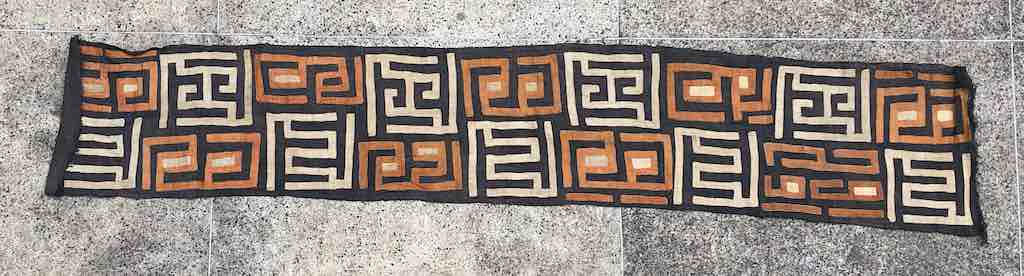 4" Embroidered Tape Trim on Off-white ground. 18 yards will come as a continuous piece.