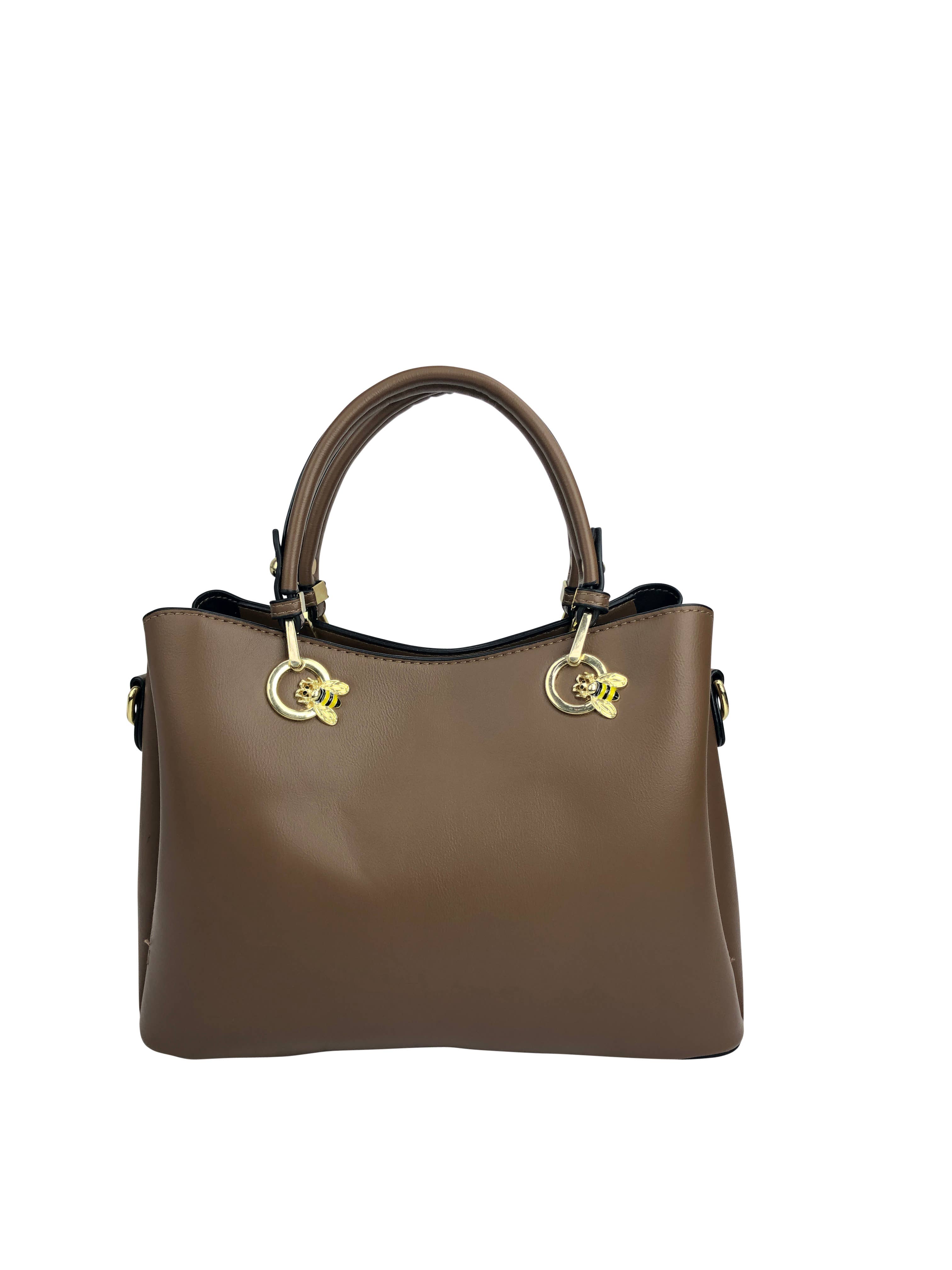 Our Kearny Bag is a chic and structured tote for every day. Crafted from a combination of smooth and pebbled high-quality vegan leather and designed with luxurious gold-tone embellishments, the Kearny Tote Bag is a must-have addition to your wardrobe. Open the top zipper closure to reveal a fully lined interior with dedicated pockets for your phone, wallet, and other small items, with two slip pockets and a wall-zippered pocket. To keep your belongings organized, the interior also features a padded middle zip compartment. The exterior features a convenient back zip pocket. Carry it with the comfortable and smooth top handles or attach the adjustable crossbody strap for multiple carrying options. This style has a flat base and feet for stability. The Kearny Tote comes with a detachable triple keychain for decoration. •Measurements: 12.2” W x 10” H x 4.5” • This product is not affiliated with Michael Kors.