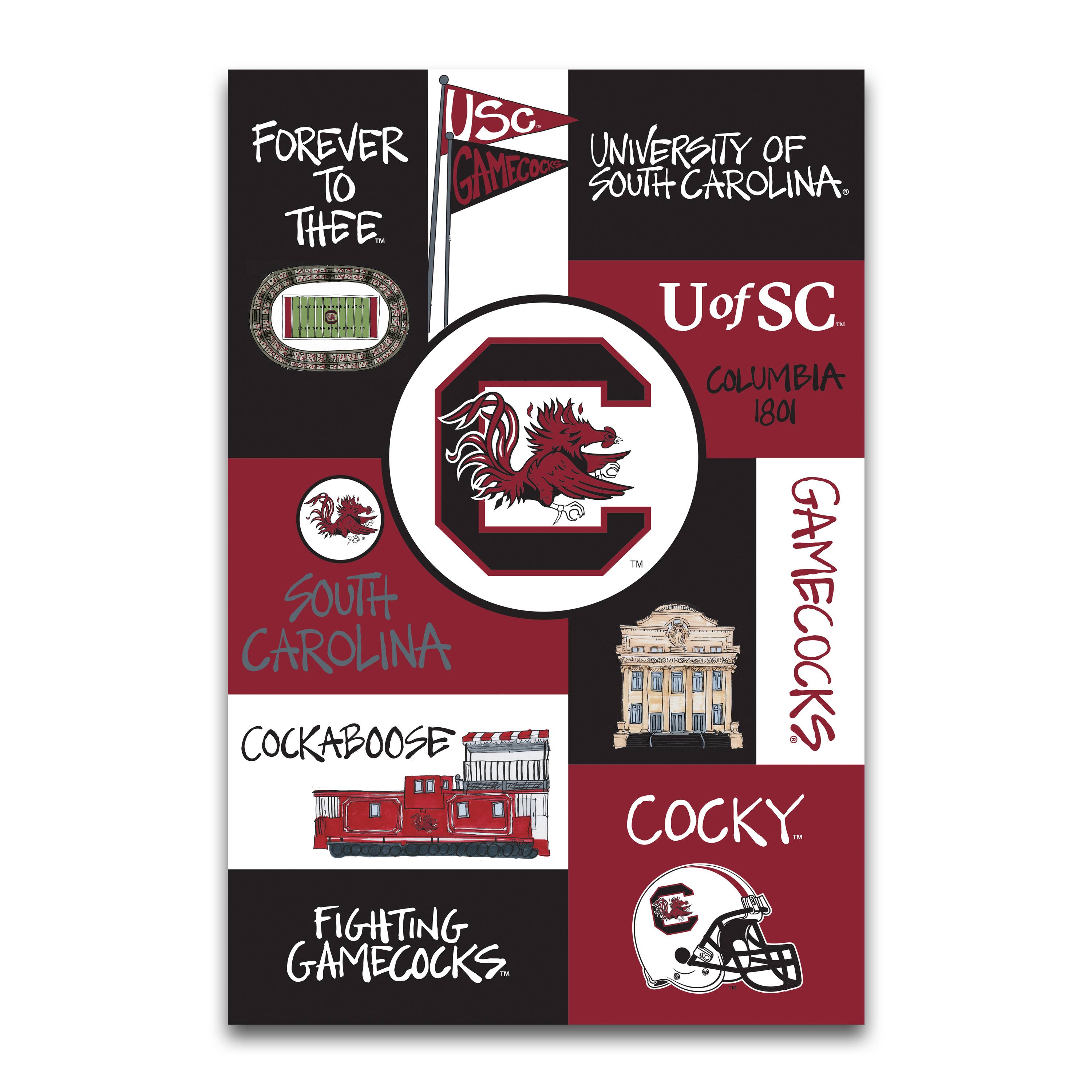 Take home a piece of University of South Carolina Collage with this original painting print by Moss & Marsh owner, Candace Brodmann Officially licensed collegiate product Square paintings are 12x12" with a white 1" border and come in a clear plastic sleeve Want a custom size? No problem! Just email us at info@mossandmarsh.co FINE ART PAPER (Unframed) This bright white, cotton, archival paper is a smooth fine art surface that creates exceptional color reproduction for beautiful long-lasting prints. • Sizes reflect printed image • 100% Cotton Fiber