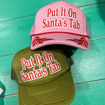 The perfect hat for the holiday season! Fit: Hats are one size fits most, unisex, and have an adjustable snap on the back. Content + Care: 5-Panel foam baseball cap Vinyl heat-pressed design Color: Green and white with green text