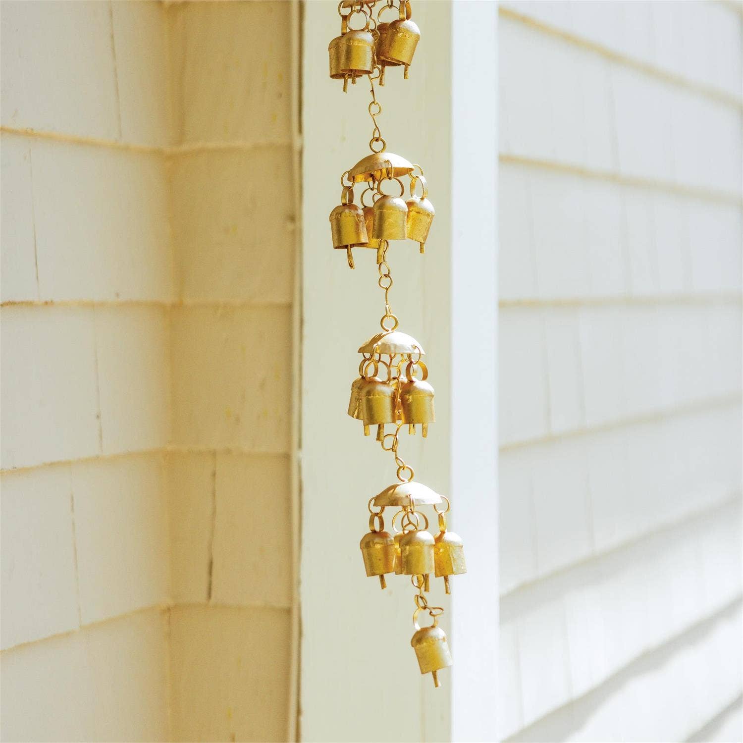 Offer your customers beautiful garden accents with the new rain chains from Zaer Ltd. International. Crafted from sturdy iron, each rain chain is easily hung outside a home or business, allowing the rain to be caught and trickle down the chain in a serene and beautiful fashion. This piece features adorable little birds on a u-shaped perch with small bells dangling above, softly chiming once hit by rain. - Outdoor safe - Powder coated - Distressed, hand painted finish - Sturdy & durable - Easy to hang with iron hook - Packaged 6pcs/master carton; 1pc/inner Master Carton: 25.59" x 16.54" x 16.54" H. Specifications: UPC: 880235180155 Material: 100% iron CBM: 0.115 Finish: Antique Copper MOQ: 6pcs Hardware Included: YES Type of Hardware: V-Hook *Additional specs and images coming soon. Thank you for your patience! Minimum: 6 Increment: 6 Dimensions: 4.75" L x 1.75" W x 96" H
