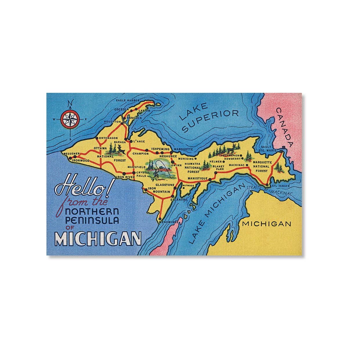 Send Great Lakes greetings to friends and relatives near and far with our The Kind We Catch Here Postcard! Back Blank Specs * Size: 5- 1/2" x 3-1/2" * Offset printed * Soft-white, 100# cover weight linen paper Origin Respectfully reproduced by Peninsulas using authentic vintage imagery and inspiration.