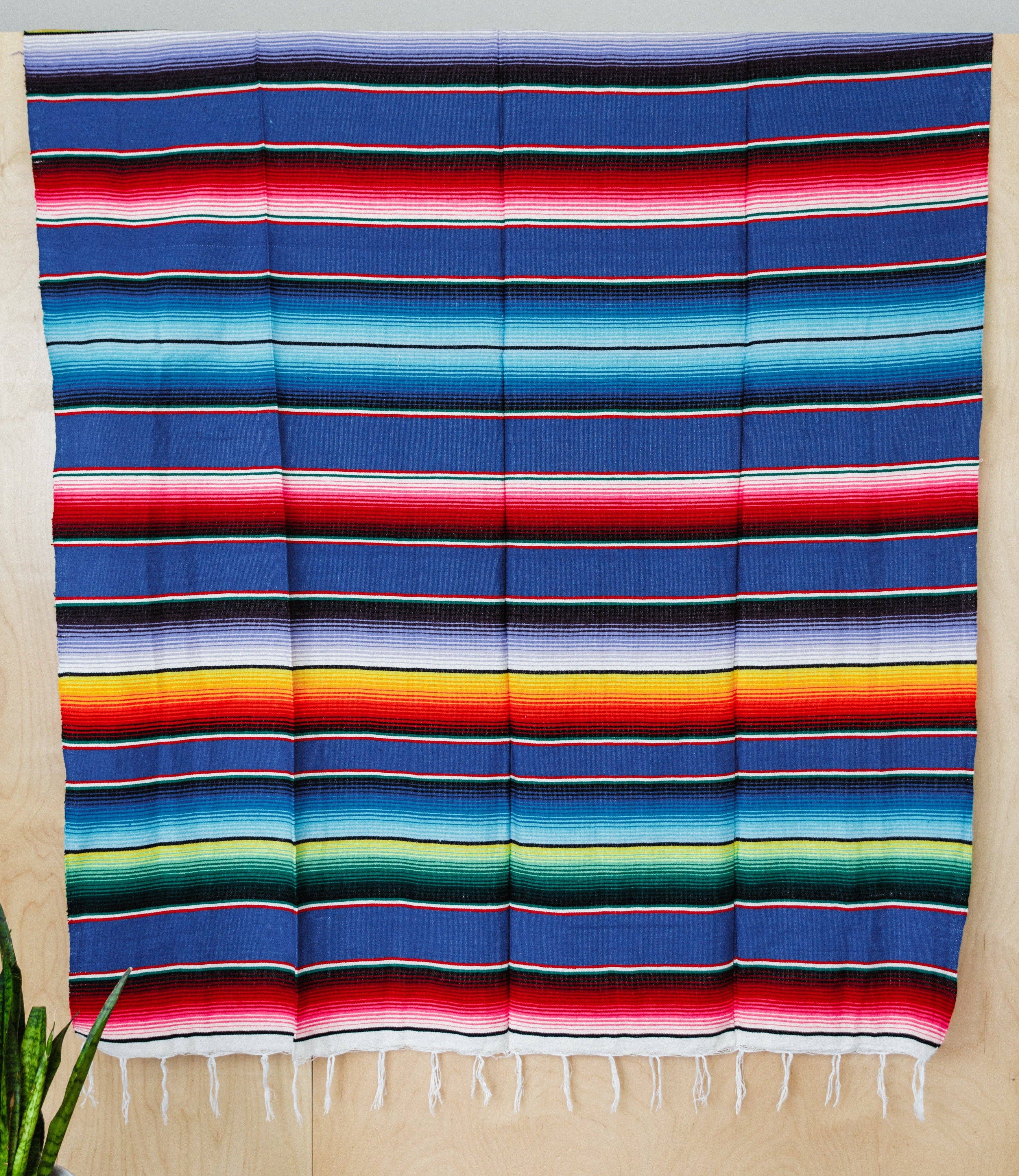 Diamond Blanket Throw 56" x 84" Hand Woven Recycled acrylic/Cotton. This Mexican falsa blanket is a soft, medium-weight, tightly woven blanket that is great for use as a yoga blanket. These beautiful yoga blankets are made of an acrylic blend and come in a variety of colors. They are soft, thick, and a generous 84 inches long by 56 inches wide. Yoga blankets are typically used to provide warmth during your final relaxation pose but also have many other uses. Mexican yoga blankets may be the most versatile yoga prop!
