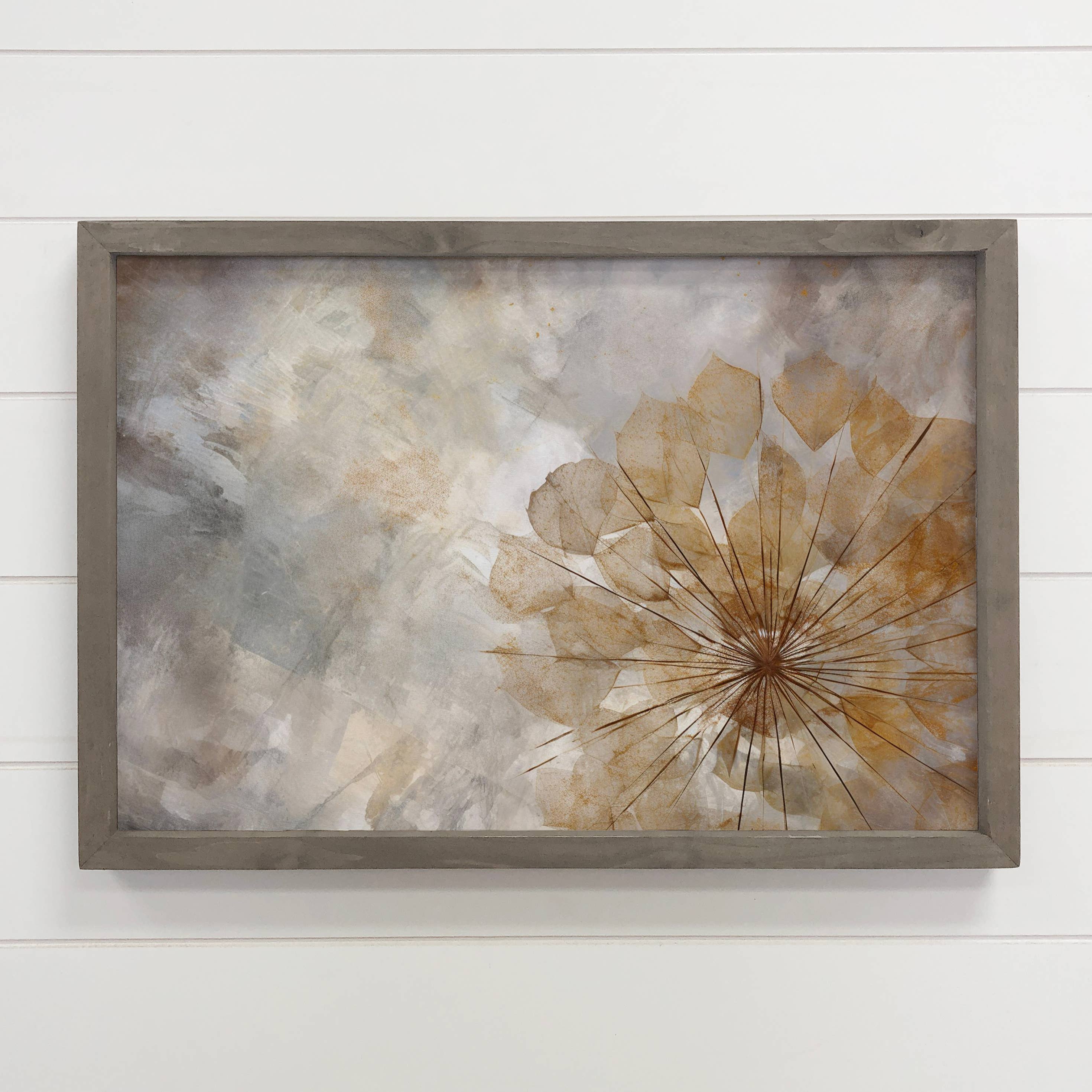 This unique piece is a simple way to bring beauty and charm to any wall or shelf within the home. It is made from high quality American hardwood planks with a hand painted face, and printed with UV cured ink, and is framed in a natural walnut frame. Each piece is unique with its own personality, marks, wood grain, and look. Easy to clean with a dry cloth.