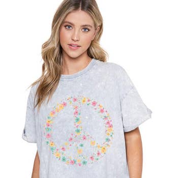 Wholesale Floral Peace 2 Cream - Women's Screen Printed T-Shirt