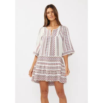 The Aztec knit shift dress with short sleeves is a stylish and comfortable wardrobe choice. The shift silhouette offers a relaxed fit, making it easy to wear on various occasions. The Aztec knit pattern adds a touch of bohemian flair and visual interest to the dress, making it a unique and eye-catching piece. The short sleeves provide a breezy and laid-back feel, perfect for warmer days or casual outings. This dress is versatile enough to be dressed up or down, making it a go-to option for both casual and semi-formal settings. Whether you pair it with sandals for a relaxed look or add accessories for a more polished ensemble, the Aztec knit shift dress is a versatile and trendy addition to your wardrobe. *Unlined. -Model is 5'9" and wearing a Small