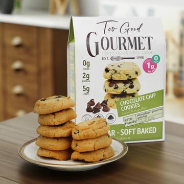 6 count case. Wholesale 5.40 / box, MSRP 8.99 / box At AL’s Real Goods, chewy comes first. Our Chewy Choco Chip Cookies pack real butter, non-GMO cane sugar, and rich chocolate chips—remade by a legit Michelin-starred chef. Each cookie balances chocolate with nutty red wheat flour and a touch of savory—Mind-Blowingly Taste right onto your shelves. Chewy with a side of attitude, AL’s Real Goods started as a kitchen project with Michelin-starred chef Aaron London and his daughters. Today, that simple idea has grown into a brand defined by comfort, craft, and character. Kiss my cookie—these aren’t just snacks, they’re a story. • Made with grass-fed butter, cane sugar & free-range eggs • Baked with artisan red wheat flour for chewy, nutty flavor • Packed with rich chocolate chips for a classic taste • Shelf-ready cookie boxes for gift shops & grocery displays • Proven seller in gourmet cookies & artisan assortments • 6-month shelf life, ambient storage • Brand founded by Michelin-starred chef Aaron London • 3 cases per master carton, 6 boxes of cookies/case, $9.99 MSRP/box From grocery aisles to seasonal displays, these chewy cookies stand out as both a comfort snack and an artisan food story worth sharing. Stock them year-round as a go-to choice for gift shop snacks, holiday cookies, and artisan treats crafted with Non-GMO ingredients. Non-GMO snacks, chewy chocolate chip cookies, chocolate chip cookies, gourmet cookies, gift shop snacks, grocery store, snack cookies, chewy cookies, holiday snacks, cookies in a box, holiday cookies, best seller snacks, snacks in bulk, artisan food, artisan snacks