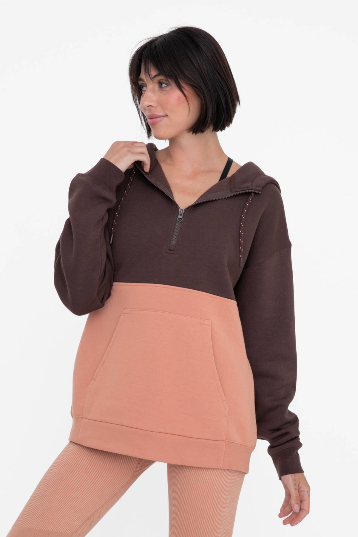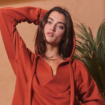 The Fieldstone Pima Cotton Hoodie is the definition of laid-back luxury. Crafted from ultra-soft Pima cotton, this oversized pullover features a relaxed fit that drapes effortlessly for all-day comfort. Complete with an adjustable drawstring hood and a classic kangaroo pocket, it’s designed for ease, versatility, and everyday wear. Whether you're lounging, layering, or on the move, this hoodie brings softness and style in equal measure. Luciana is 5'9", a size 2, and is wearing an S 95% pima cotton 5% spandex Pigment-dyed Made in China