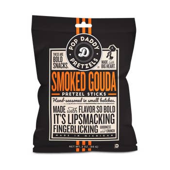 Our Pretzel Medley includes a unique mix of mini pretzel sticks, micro mini pretzel twists and to provide a wonderful variety of delicious pretzel textures in every bite. Our Smoky Gouda Medley will satisfy even the most discerning cheese lover but with a terrific pretzel crunch. Pretzel Pete is family-owned and proudly proudly producing in Hatboro, PA USA We create our great flavors "Naturally" and do not use any artificial flavors or MSG. We manufacture at our own Peanut-free, Tree Nut-free and Sesame-free factory that ONLY produces pretzels. We use locally grown wheat exclusively and Non-GMO canola oil and malt syrup. Our seasonings are soaked into our pretzels, not sprayed on, providing a "WOW" in every bite. Enjoy Free Shipping in 2023 with additional discounts for larger orders. We recommend ordering in multiples of 4 cases (can be mixed) so orders can be shipped in master cartons to protect the product and reduce breakage.
