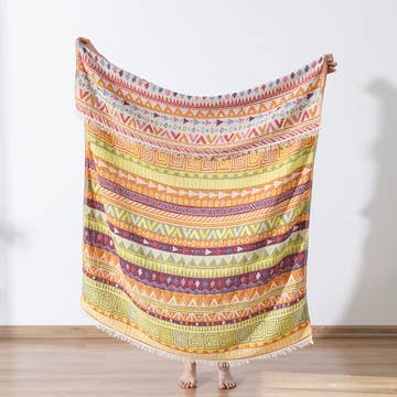 “Just Breathe” This textured family blanket is started with imported authentic Mexican Blanket and paired with an inspirational saying. Each blanket is handmade which makes them unique and will vary in color and pattern. Uses Include: Best beach blanket, perfect to use as a yoga blanket, lounging, picnic blanket, throw blanket, travel blanket, great blanket for camping and to keep you warm in your RV. There are endless creative uses as well… Hang it as a tapestry wall décor in your room, unique inspirational gift for your family and friends, and perfect to add in any occasion gift basket. Product Description: 78" X 54" Exclusive Design with Inspirational Words Handwoven by artisans in Mexico Hand-finished in the United States Single Layer Soft Recycled Yarn made of 50% Acrylic, 10 % Cotton, and 40% Polyester Machine or Hand Wash Cold; Tumble Dry Low Or Lay Flat