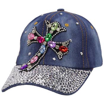 - This Gothic Sharp Latin Cross Rhinestone Cap Hat features a stylish design with rhinestones, perfect for adding some extra flair to your outfit. - The hat cap is a versatile accessory that adds style to any outfit. - Size: One Size Fits Most - 100% Cotton - Adjustable Buckle Closure