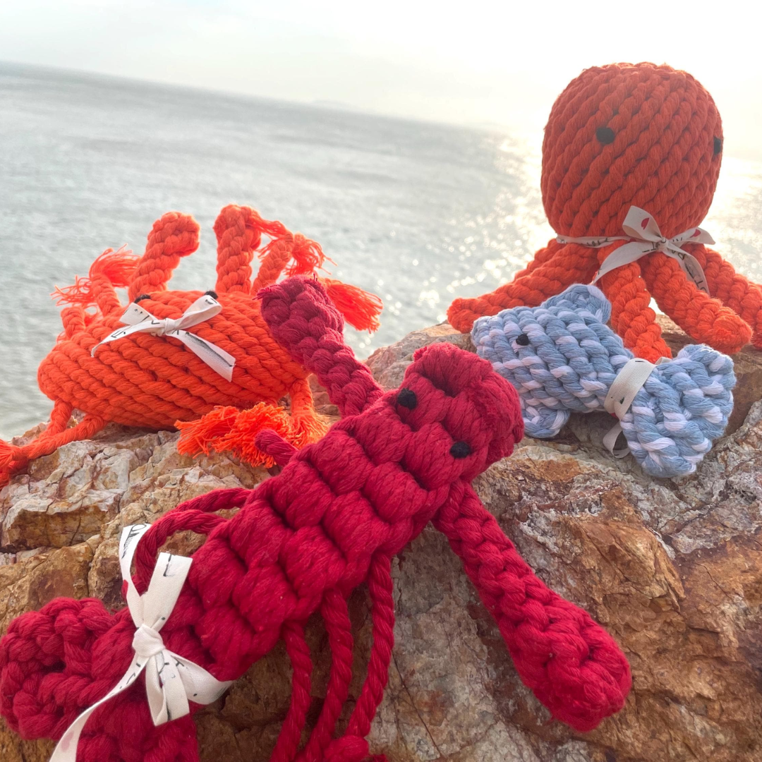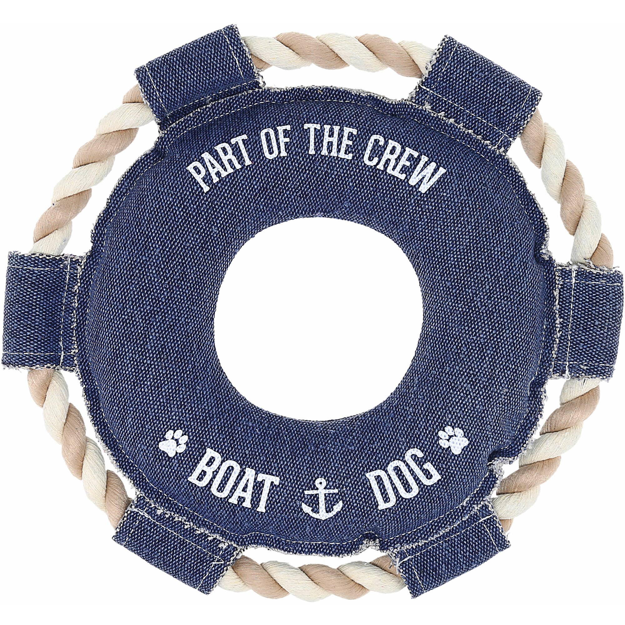 Anchor measures 7". All our Good Karma Rope Toys are hand tied and dyed using non-toxic vegetable dyes. As your dog chews, our rope toys fray and act like doggie dental floss. And at Jax & Bones, we believe in playing it forward, so with every purchase of a Good Karma toy, we donate 10% of the proceeds to rescue and animal welfare groups to help these animals find a forever home.