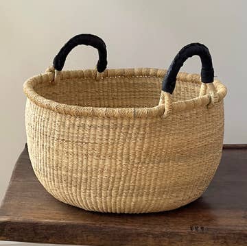 The Product: This basket is perfect as a gift basket, for use on a desk or coffee table, or for organization on a shelf! With endless possibilities, this is definitely a staple you want to have around! The Story: We work with 3 different groups of makers (totaling 20 people!) to make our baskets. Locally sourced dried palm tree leaves are handwoven into a beautiful 2nd Story with each product made; these pieces show off the beauty of Haiti. It takes steady patience and an artist’s feel to work with the palm leaves. Their work speaks for itself! The Details: -100% natural, local, upcycled materials -dimensions: 12” x 12”