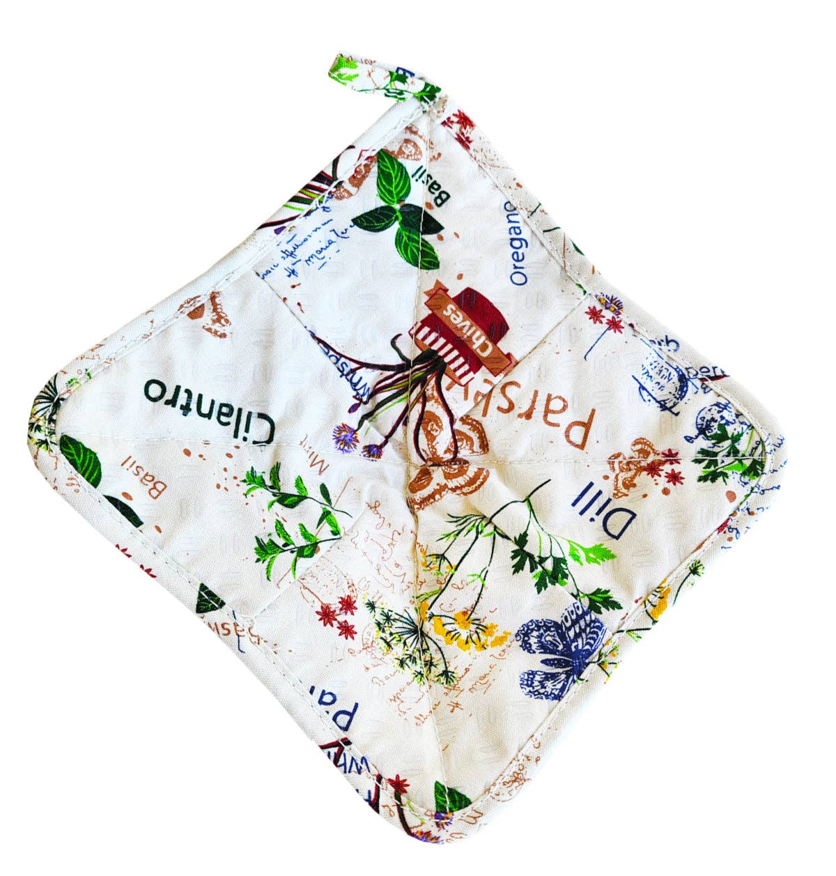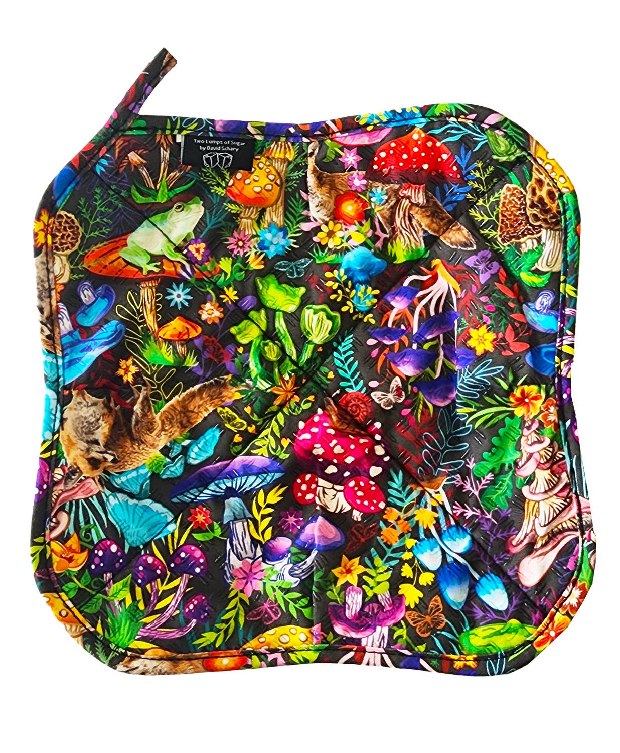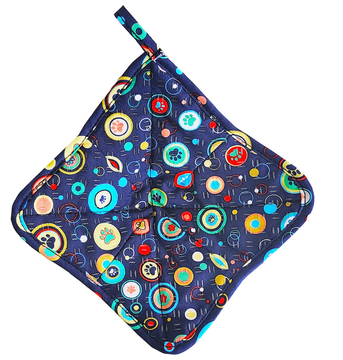 Cozy designed to keep hands protected when holding hold bowls, mugs and small plates! • Multiple layers of protection • Designed to protect hands from hot + cold • Flexible with a raised non-slip textured surface for secure gripping • Cotton print with silicone grippers on both sides • 8" x 8" w/ hanging loop • Easy care Microwave Safe