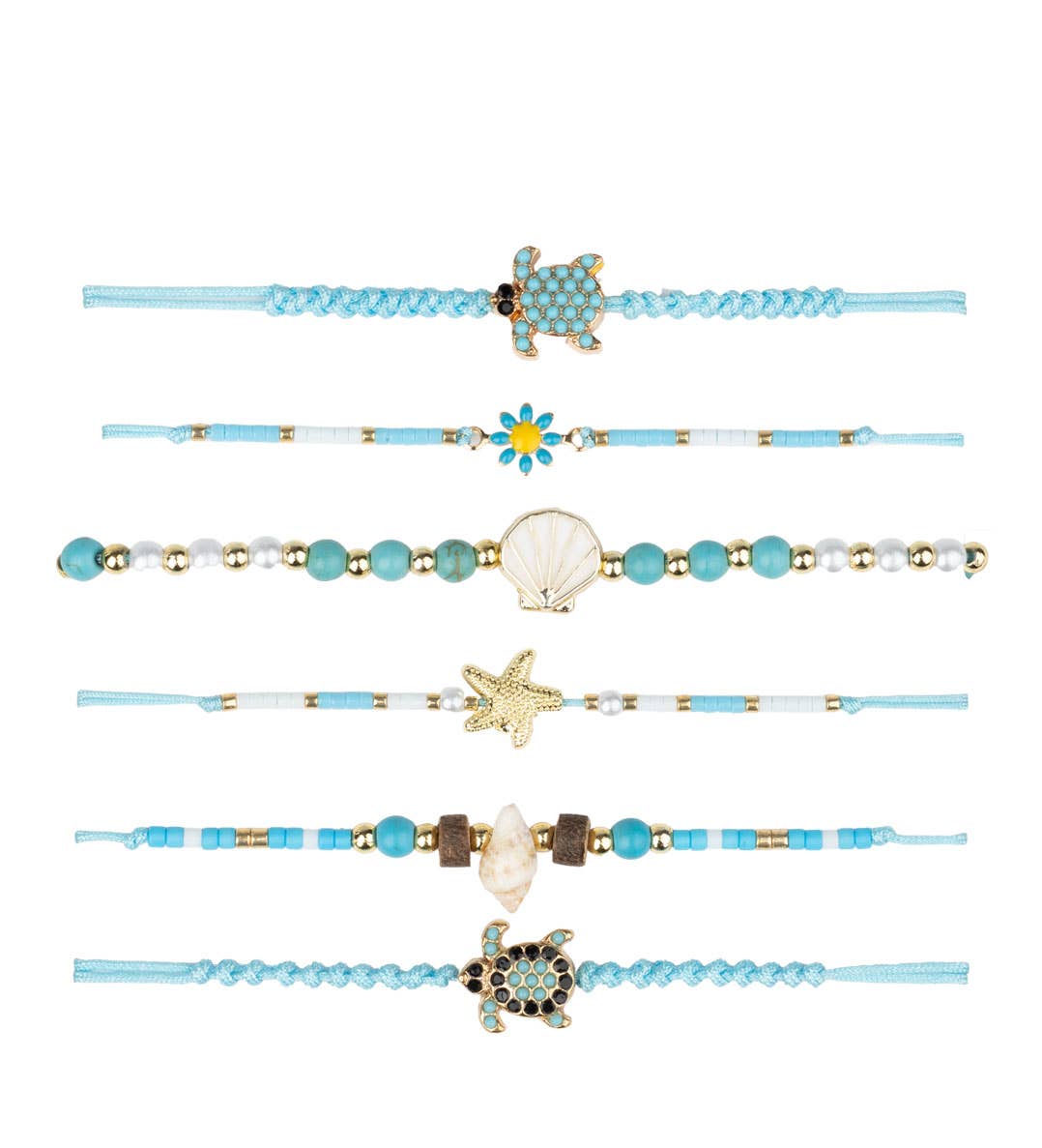Wholesale 6PCS - Starfish Charm Accented Conch Shell Seed Beaded Multi Layered Anklets