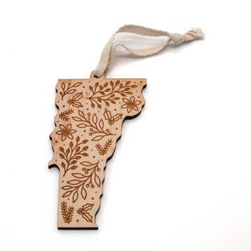 Spread the Vermont love far and wide with a handcrafted large ornament! Laser cut wooden large ornament in the shape of Vermont engraved with a heart. Heart will be placed over your location, unless otherwise specified. • Made of 1/8" handpainted baltic birch plywood. • Available in our array of colors including Red, Natural, Aqua, Olive, Mustard, Light Pink, Sage, Purple and Teal. • Hand strung with white and gold baker's twine. • Ornament measures approximately 2.9" x 4.4". • Unpackaged