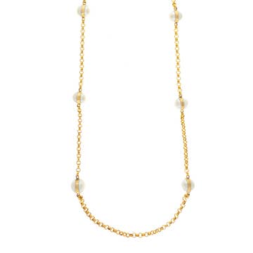 A playful mix of ball and CZ stations, designed to layer seamlessly with your favorite chains. A little texture, a little sparkle. Product Details Available in 14kt gold plated brass or Rhodium plated brass Stones are white cz and measure 3.0mm each Lobster Clasp Closure Size & Fit Our Model is wearing the 16" and 18" necklace Model is 5' 10.5" with 31.5" bust, and 25" waist Product Care: METAL: Use a soft cloth to gently wipe clean, then remove any remaining impurities with mild diluted soap. Rinse with warm water and dry thoroughly before storing in the provided jewelry pouch. Do not use abrasive cleaners, steamers or ultrasonic machines. GEMSTONE: Avoid contact with perfumes, hairsprays or other chemicals. Clean with a moistened cloth. Do not use chemical jewelry cleaners.