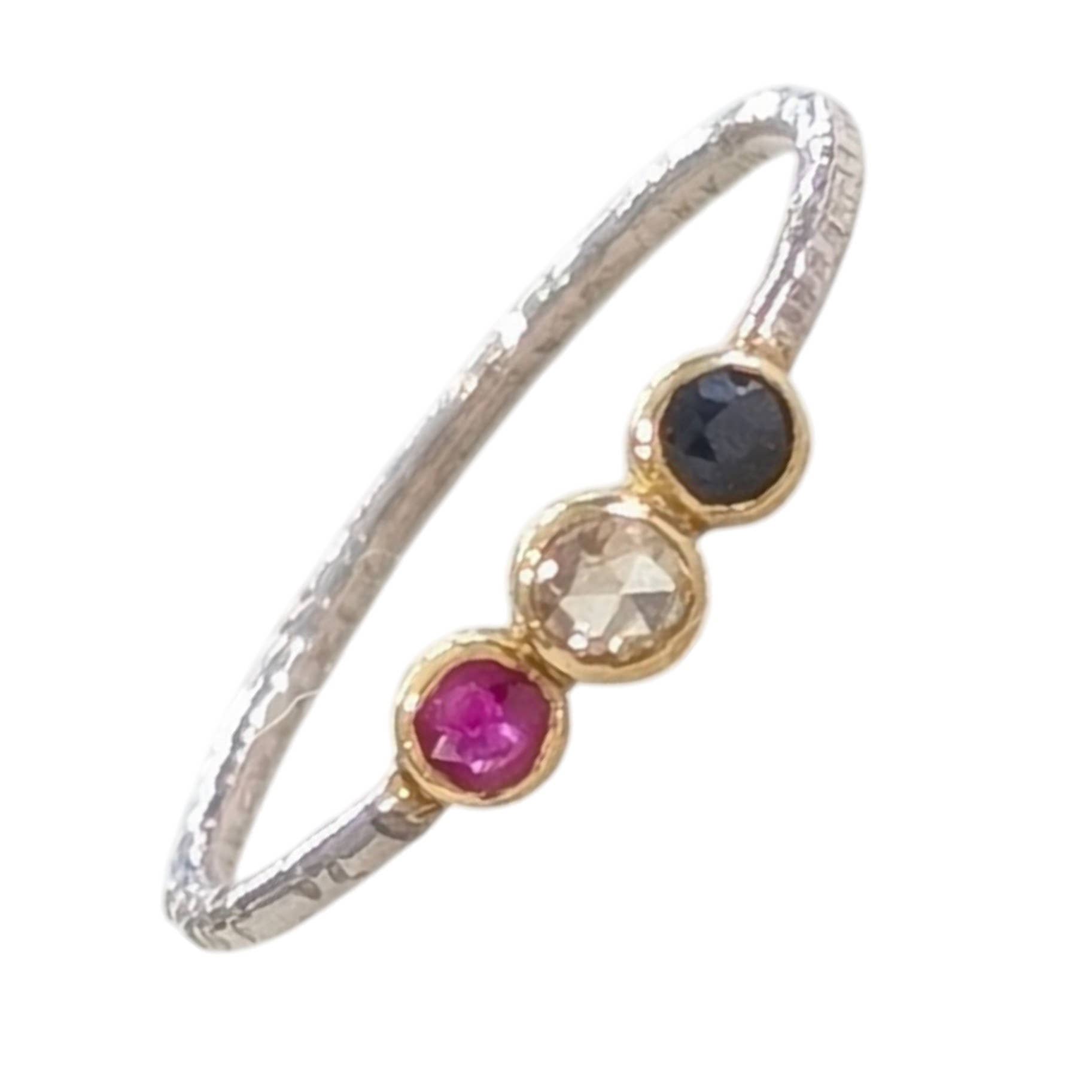 14k Gold Sapphire Rainbow Ring 14k solid yellow gold Natural sapphires 4mm band