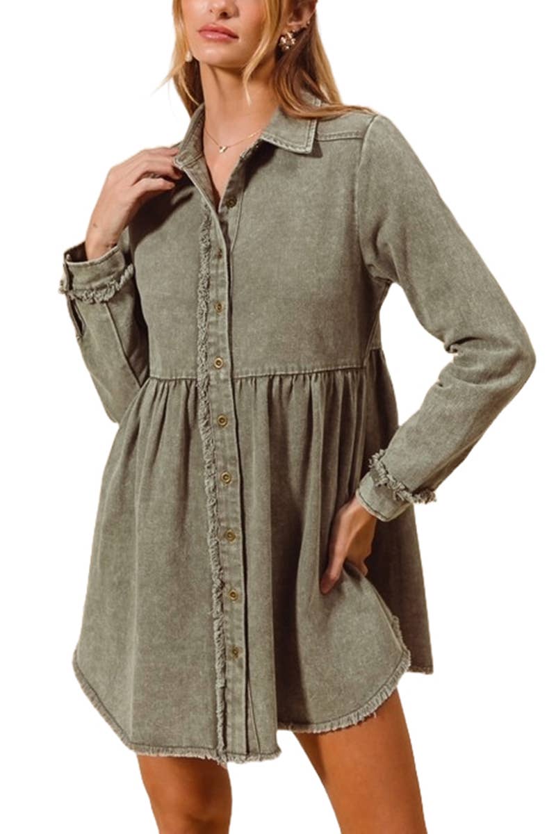 22373D - Denim Mix Brushed Plaid Button Up Dress