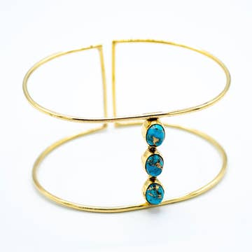 SKU: B2001T Made in India Color: Blue and Yellow Gold Is Set: Individual Material: Brass and Gold Plated Occasion: Everyday Stone Type: Turquoise UPC: 811938037682
