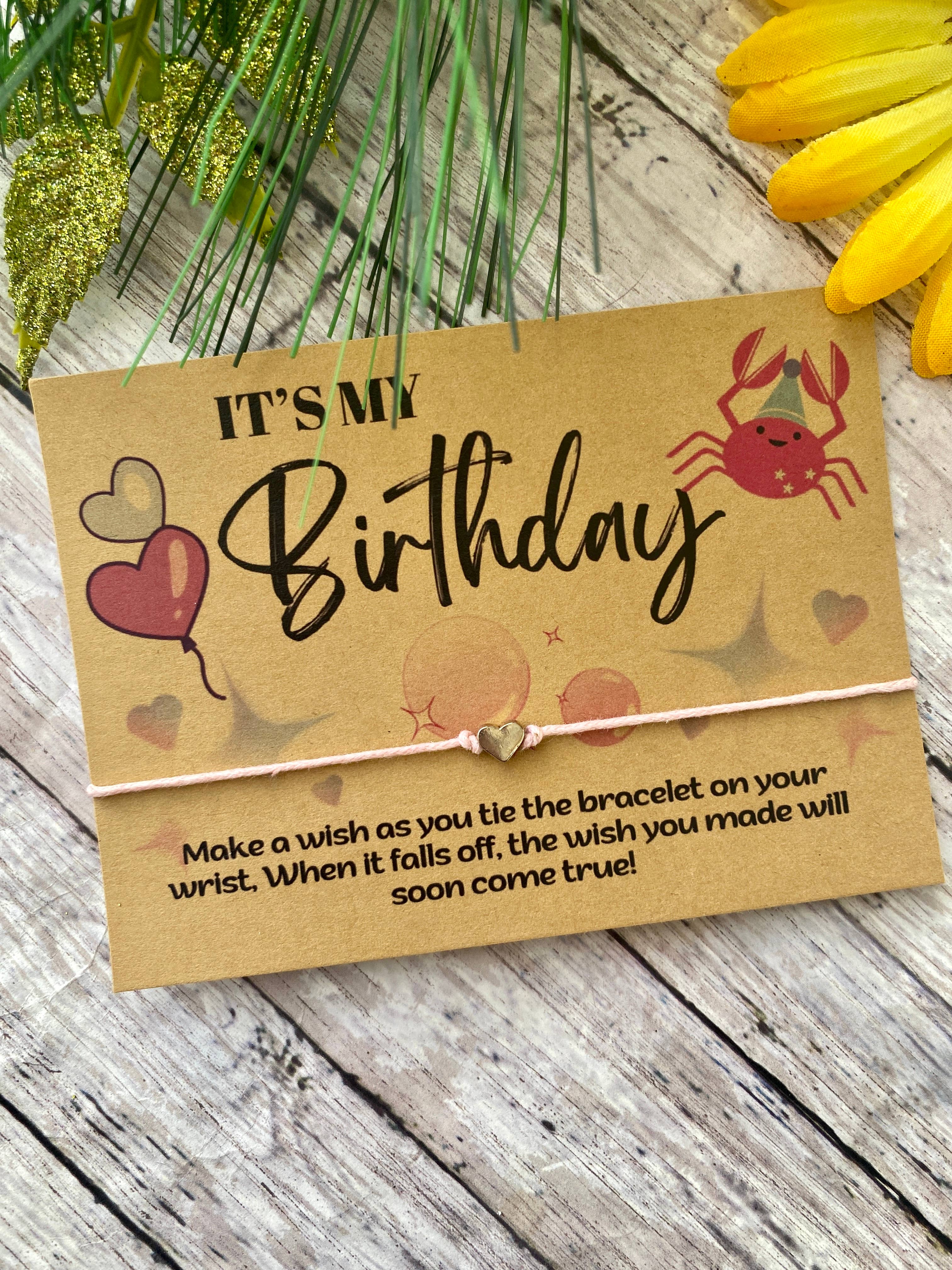 Handmaid wish bracelet with a beautiful massage, perfect for gifting to someone special, includes a 1mm cord bracelet, each with a silver star charm. Massage is printed on a high-quality kraft card and presented in a clear cellophane sleeve, The string bracelet is approximately 12" in length and the card is about 4.5"x 3.5".