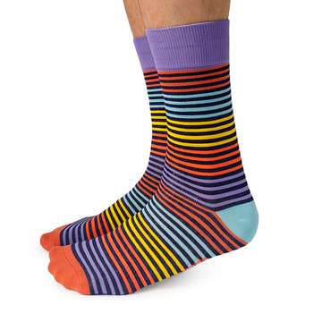 A fun and vibrant color design LGBTQ novelty crew socks with saying "Come Out, Come Out, Wherever You Are!" Stylish and comfortable! Fits men's shoe size 7 to 12. 80% Cotton, 15% Nylon, 5% Spandex. Easy Care - Machine Wash. Item # SK1083