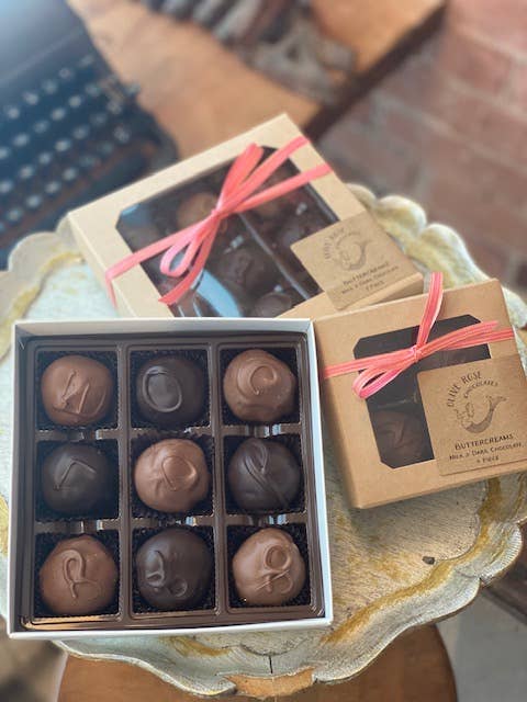 These boxes include our most popular truffles and can come in a box of 4, 6, or 12. 4 Piece Box: Espresso, Irish Cream, Rasberry, and Amaretto. 6 Piece Box: Vanilla, Irish Cream, Kahlua, Espresso, Raspberry, & Amaretto. 12 Piece box includes 2 each: Vanilla, Irish Cream, Espresso, Kahlua, Raspberry, & Amaretto.