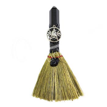 A great tool for cleansing work or study spaces, this large gemstone wicca broom with lapis and gold-colored spider and web will help to enhance wisdom, truth and patience in any work or study area. Decorations and stones attached with safe, versatile EVA adhesive.