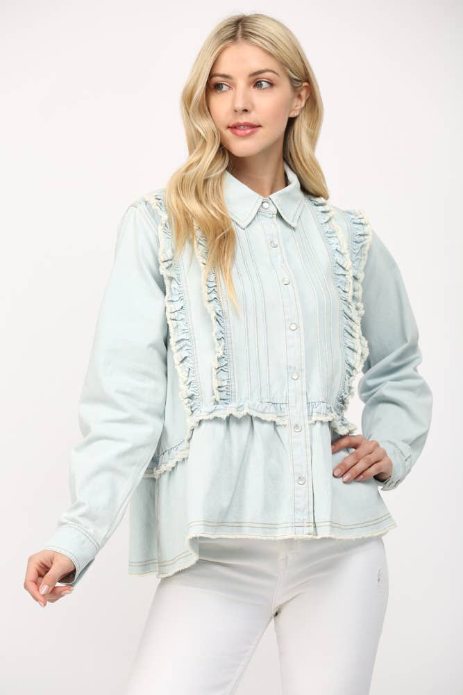Georgina Chambray Button Front Bow Top