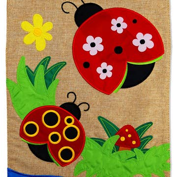 A double-sided polyester garden flag from our Cottagecore Collection displaying charming hand illustrated art of mushrooms with wild flowers and butterflies inspired by folk art. Mushroom garden flag is weather-resistant and features an opening to hang on our Garden Flag Pole. Our Mushroom Art garden flag is packaged with a header card and hook to easily hang on rack for store display. Hand wash only. A stylish nature-themed home accent perfect for everyday display in any yard or garden.