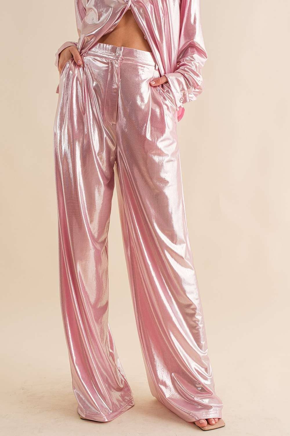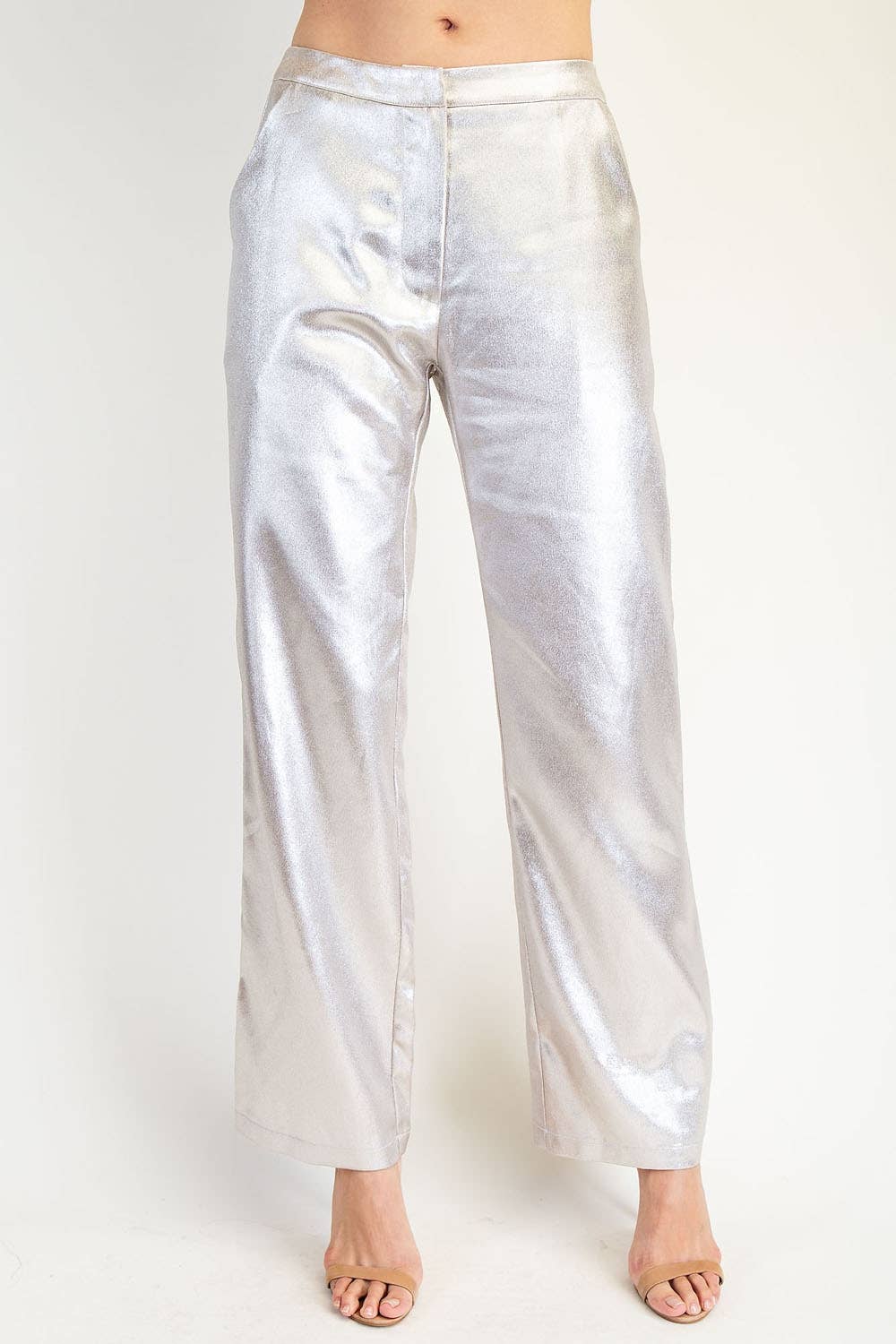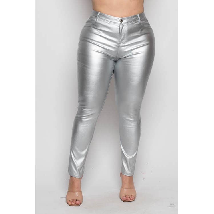 Lupe Straight Faux Leather Metallic Pants