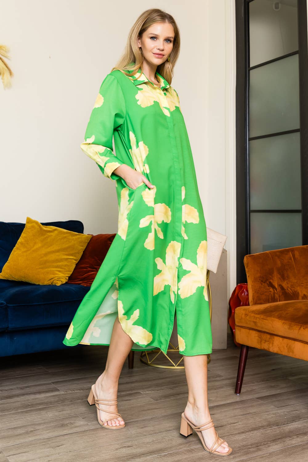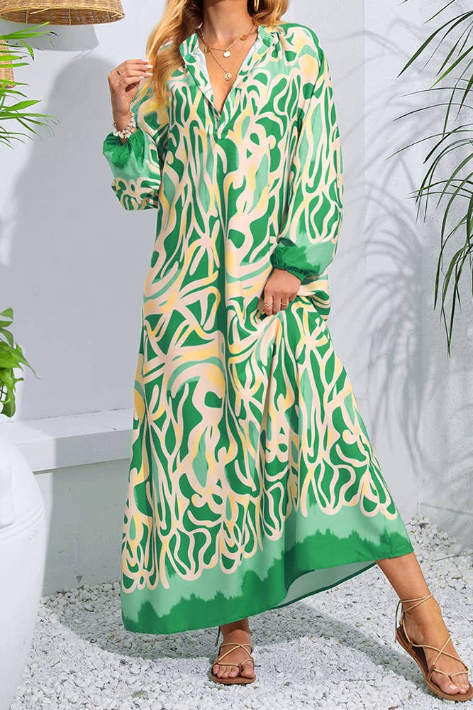 Fashion Print High-Waisted Jump-Sleeved Shirt Dress