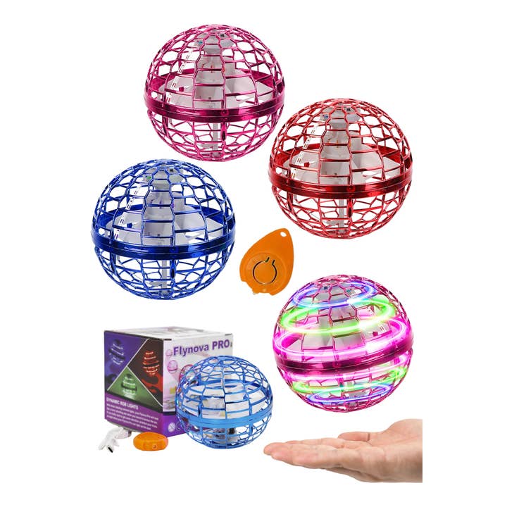 Magic LED Glowing Flying Orb Ball UFO Mini Drone Toy -Assorted Color (12 - Random Assortments Per Color) -Toy Dimensions: 3.5" * 3.5" * 3.5" -Box Dimensions: 4" * 4" * 4" -100% Plastic -CA Prop 65 Advisory -1 x USB 2.0 to Micro USB charging adapter takes 20 minutes to fully charge, and a single charge gives you a full 10 minutes of flight time. -Play various indoor and outdoor games with friends and family suitable for big kids 14+ and adults