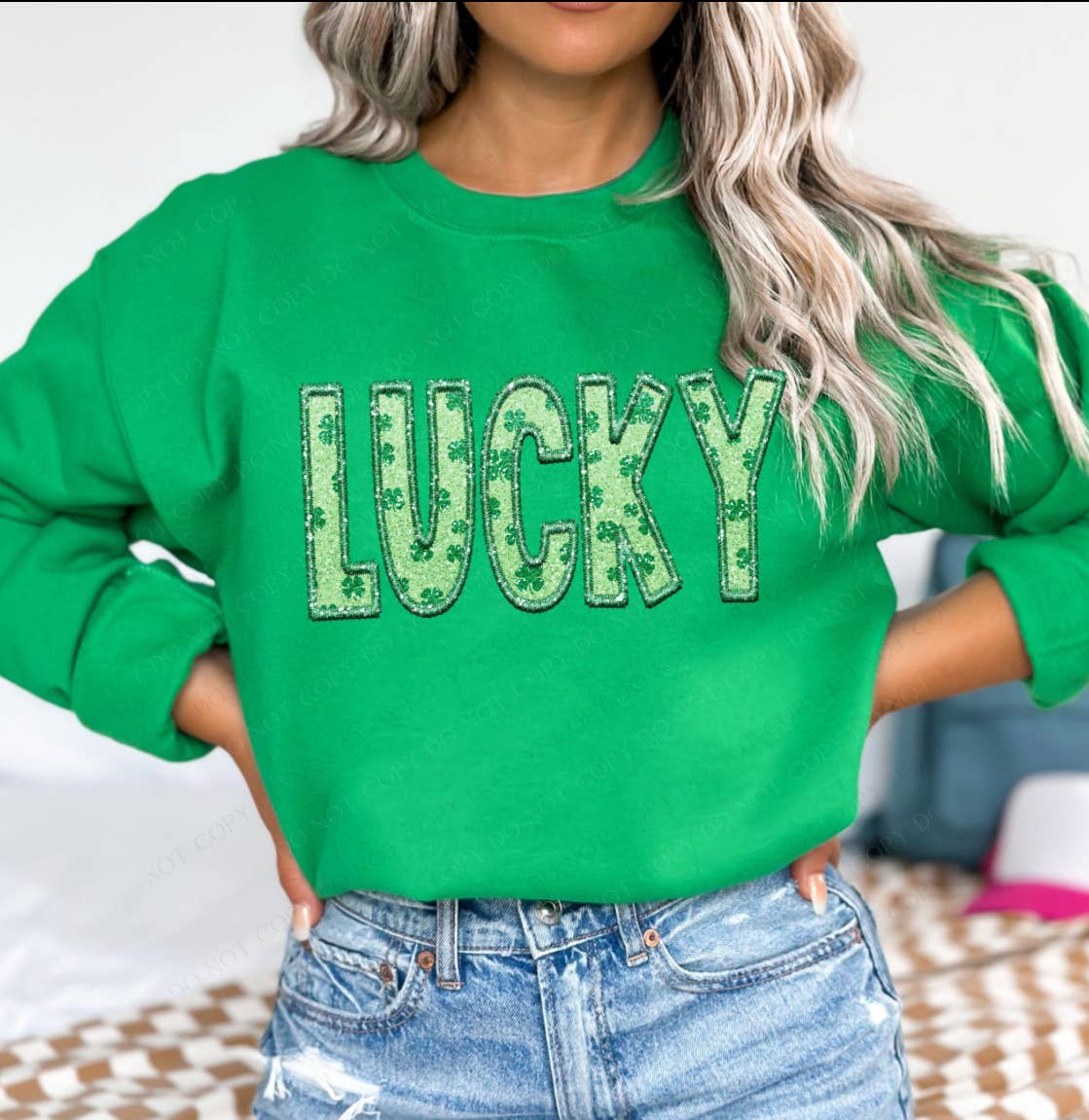 Pressed on a white gildan crewneck. We use direct to garment pressing. Print is high quality a faux embroidery
