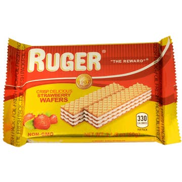 Guava wafers with fruity filling in light, crispy layers.
