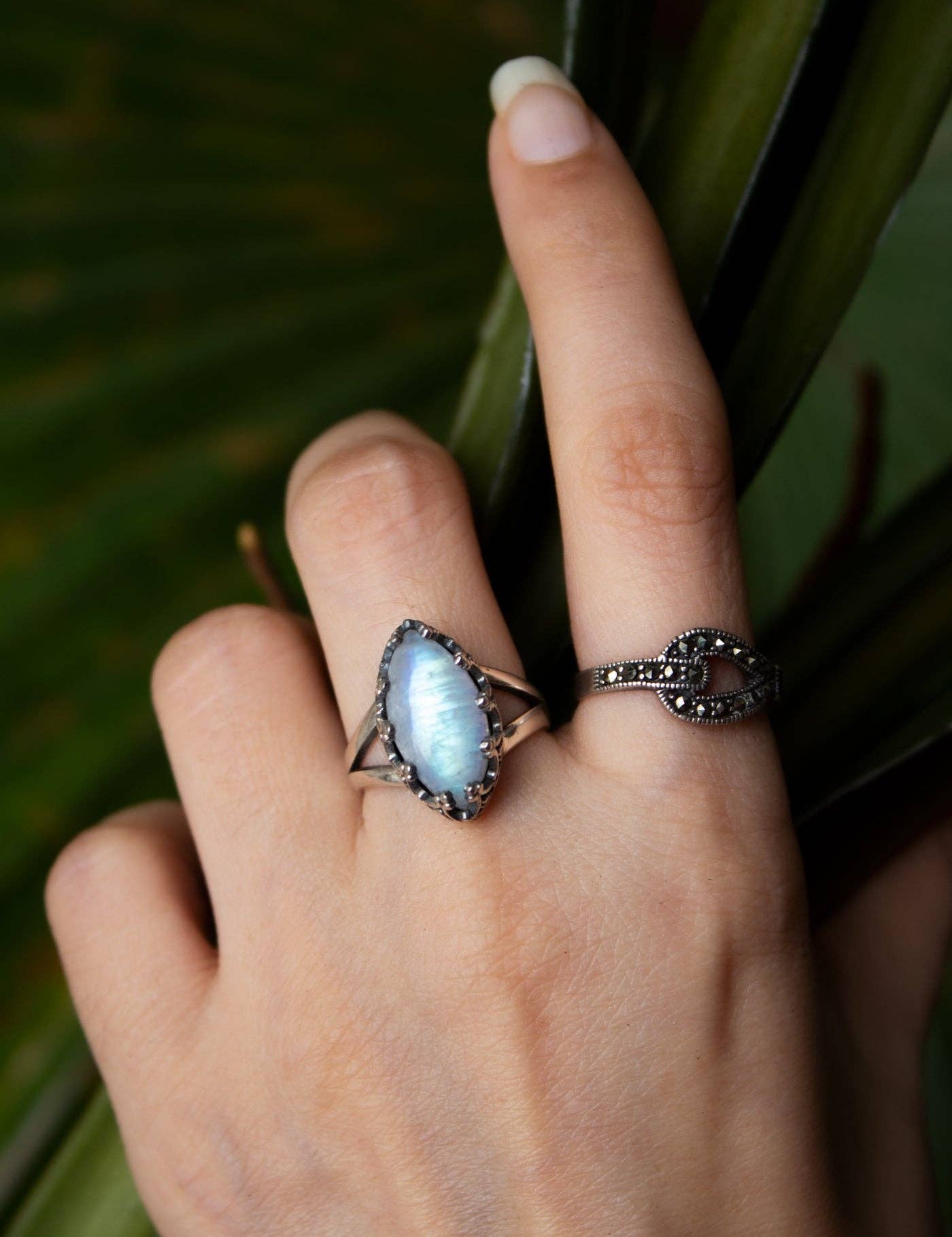 Elevate your everyday elegance with the Celestial Whisper Ring. This dainty piece features a refined labradorite stone, renowned for its captivating play of colors, set in a delicate band. Adorning the ring are charming accents of a small half moon and twinkling stars, adding a subtle touch of cosmic allure. Perfect for daily wear, the ring's understated design complements any outfit while its celestial details evoke a sense of wonder and enchantment. Whether you're dressing up or down, the Celestial Whisper Ring offers a touch of elegance and magic to your everyday style. It's a made to order piece, so the character and color of the stone would differ. **Each item is handmade and thus could have slight imperfections or irregularities due to human involvement in the process.