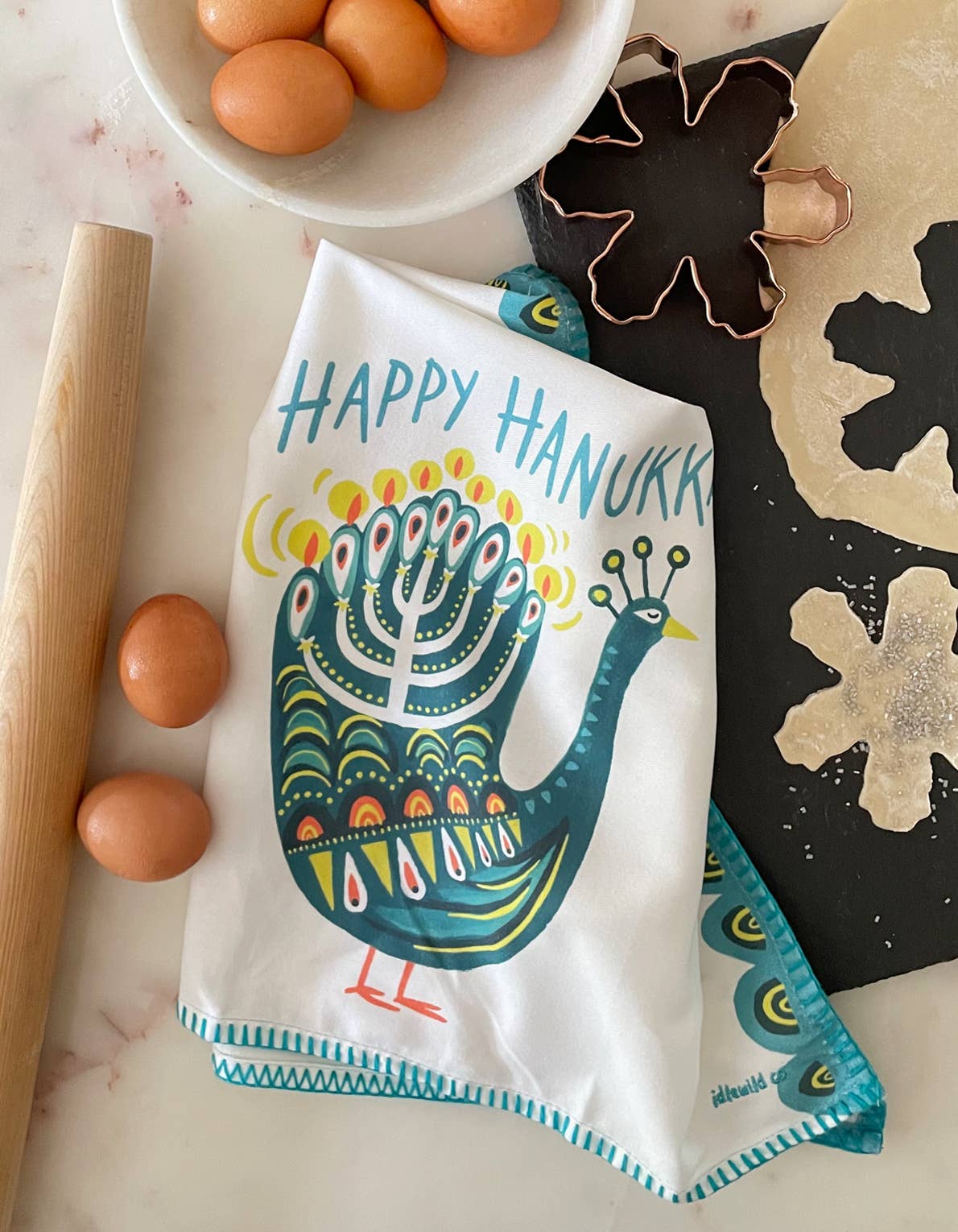 Use this festive towel for Rosh Hashana as your challah proofing towel or just a kitchen décor! Use this towel in the kitchen for your dishes or as an accessory as a hand towel in your bathroom. Perfect as hostess, holiday, housewarming, birthday or anytime gifts. Designing Moments towels measure 28x28 unfolded and are 100% cotton. As with the nature of flour sack towels, they are imperfectly perfect. They are naturally soft and wrinkly and will soften further with each wash. Handmade and screen printed in NC.