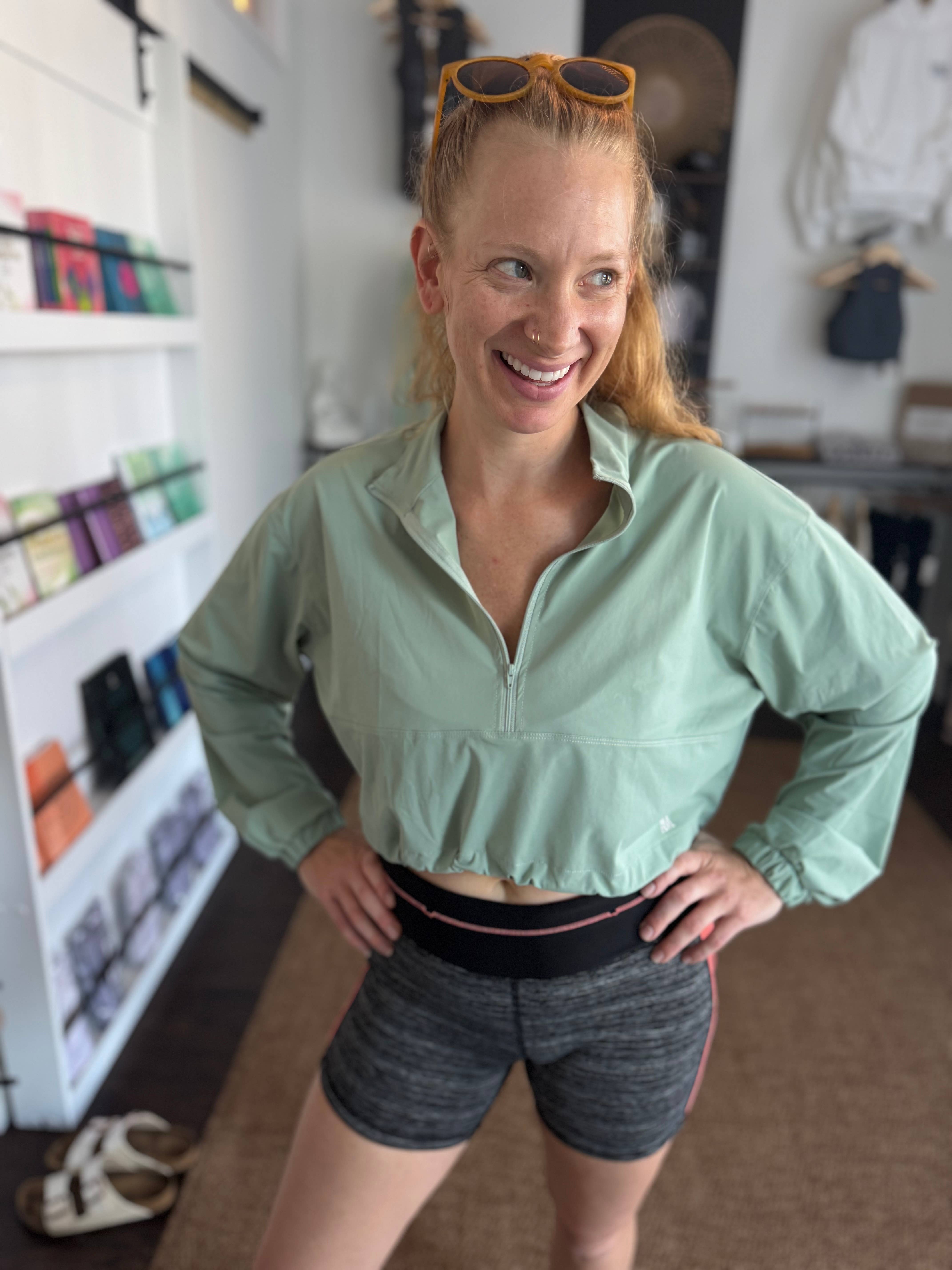 Half Zip Crpped Sports Jacket & Shorts 2 Piece Set
