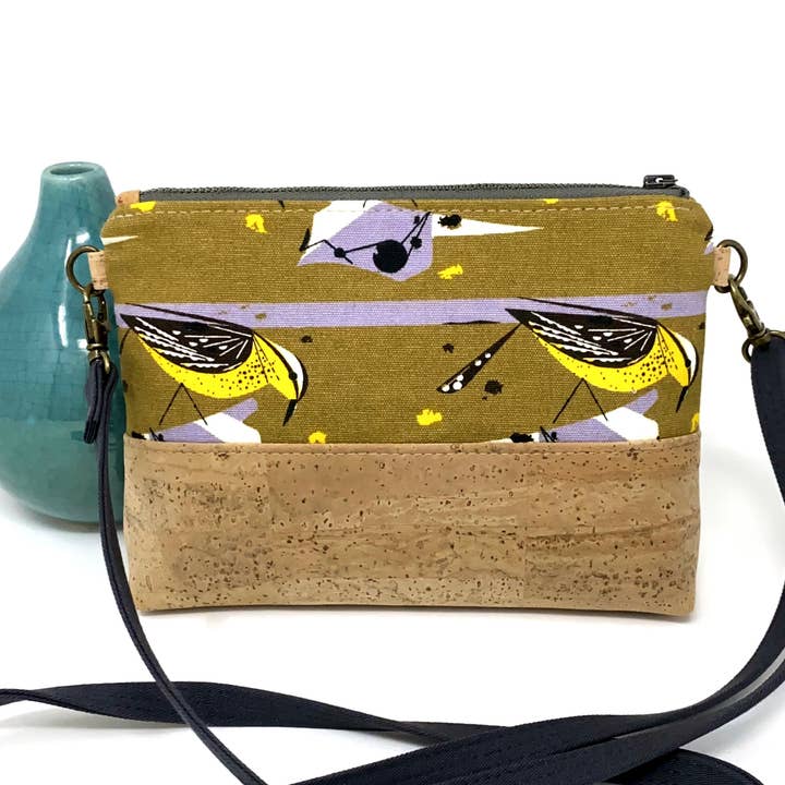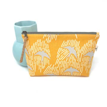 A sleek zippered pouch with a slimmer profile that’s just right for containing all the small things and slipping into a purse or larger bag. Made out of a retro organic cotton barkcloth, front and back are identical. Print designed by famed mid-century artist, Charley Harper. **Please note lining fabrics will vary** * Approximate dimensions:  9" wide, 6" tall, 1" deep * All fabrics used are certified organic cotton dyed with low impact dyes (interfacing used is 100% cotton) * Handmade in Savannah, GA