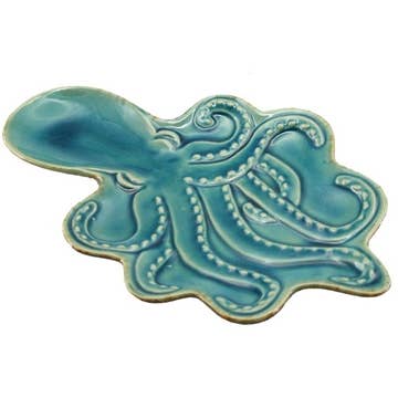 A starfish-shaped stoneware vanity tray from our Beach Collection featuring textured accents. This starfish tray complements well with coordinating pieces in the collection for a charming beach display.