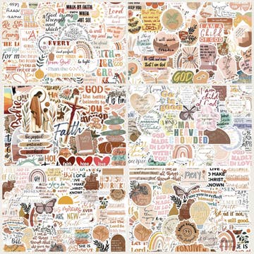 Choose either the traditional theme, pink theme, or the boho theme! Select the number of stickers desired (minimum of 50) for your sticker pack! Keep in mind that these are a random assortment of Bible stickers and the stickers shown in the photos are not guaranteed to be in your sticker pack! All of the inspirational stickers available are similar to the ones shown and are all guaranteed to be faith based! Please note that there are stickers for all denominations of Christianity within our packs! NO repeats up to 50 stickers!! Sizes vary depending on design! Vinyl material!