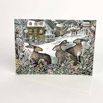 AC25: Christmas Cottage Advent Calendar by Angela Harding. Advent calendars are packed flat in a compostable bag, measure 305mm x 395mm, all include an envelope for posting.