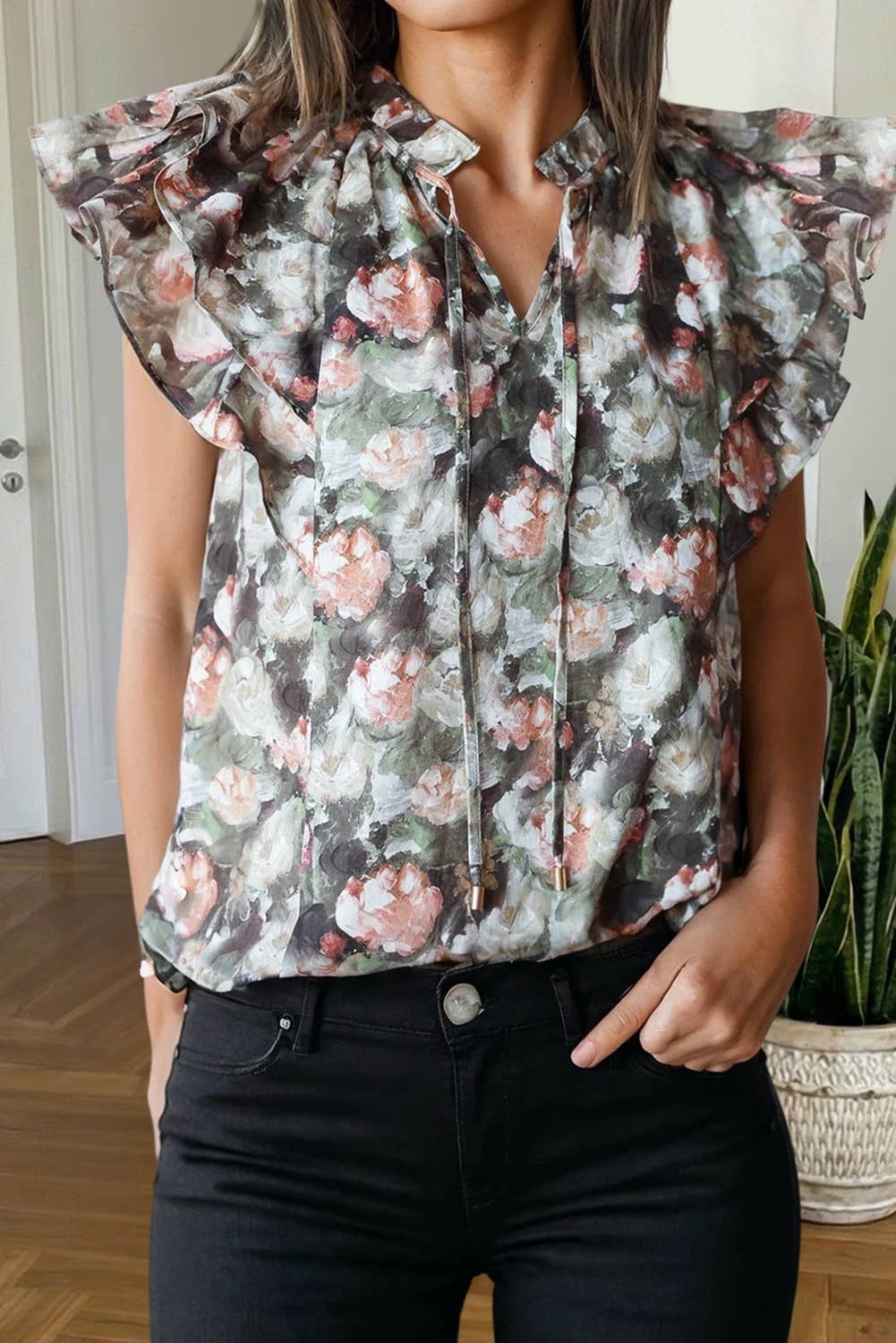 Romantic Lace Trim Tie Front Peplum Blouse