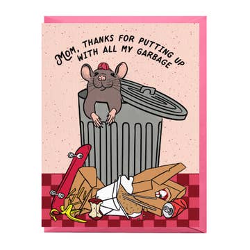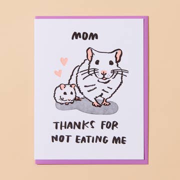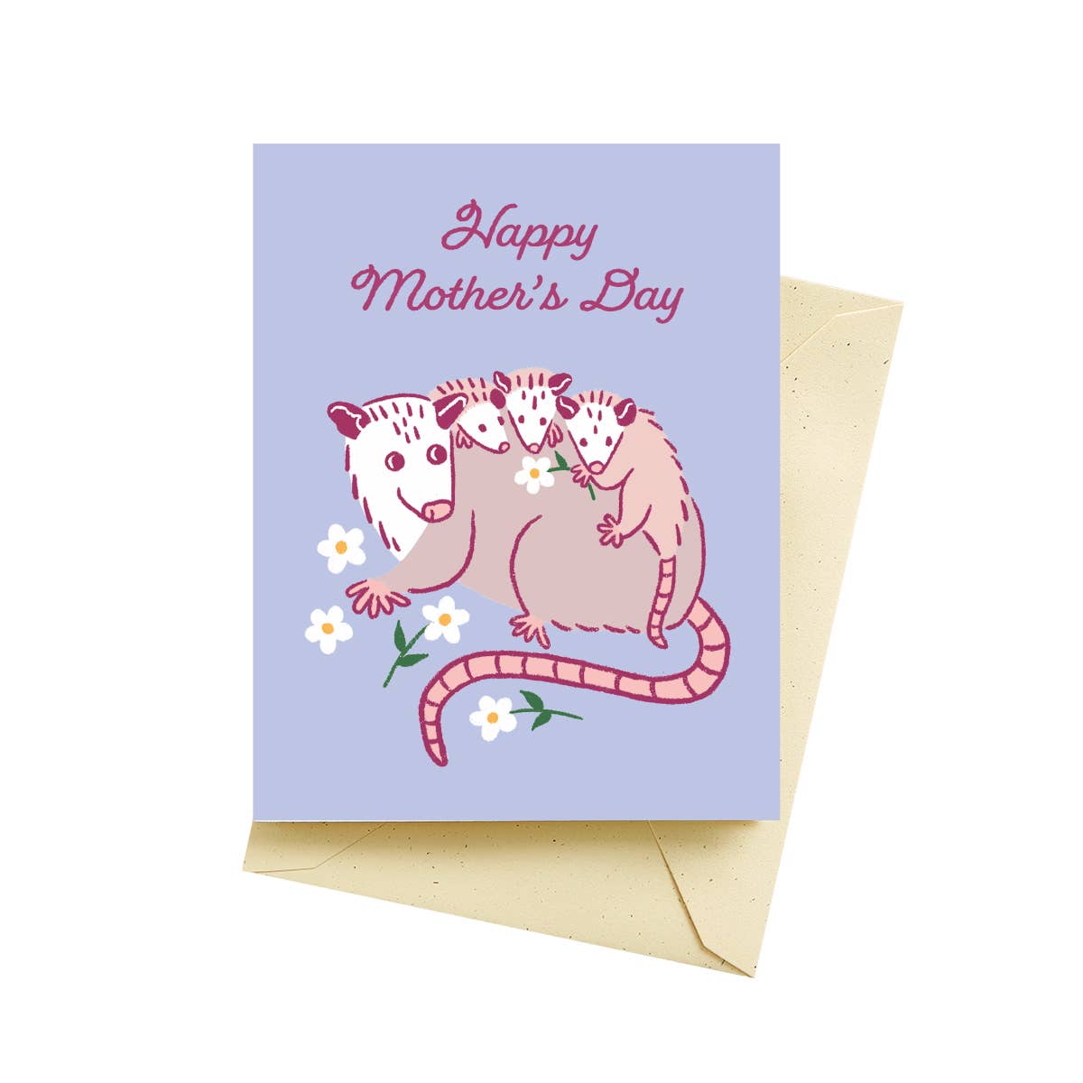 A2 card with an orchid pink envelope featuring my 'Mama Opossum' artwork. Blank inside for your own meowsage. Packaged in eco friendly cellophane sleeve if desired.
