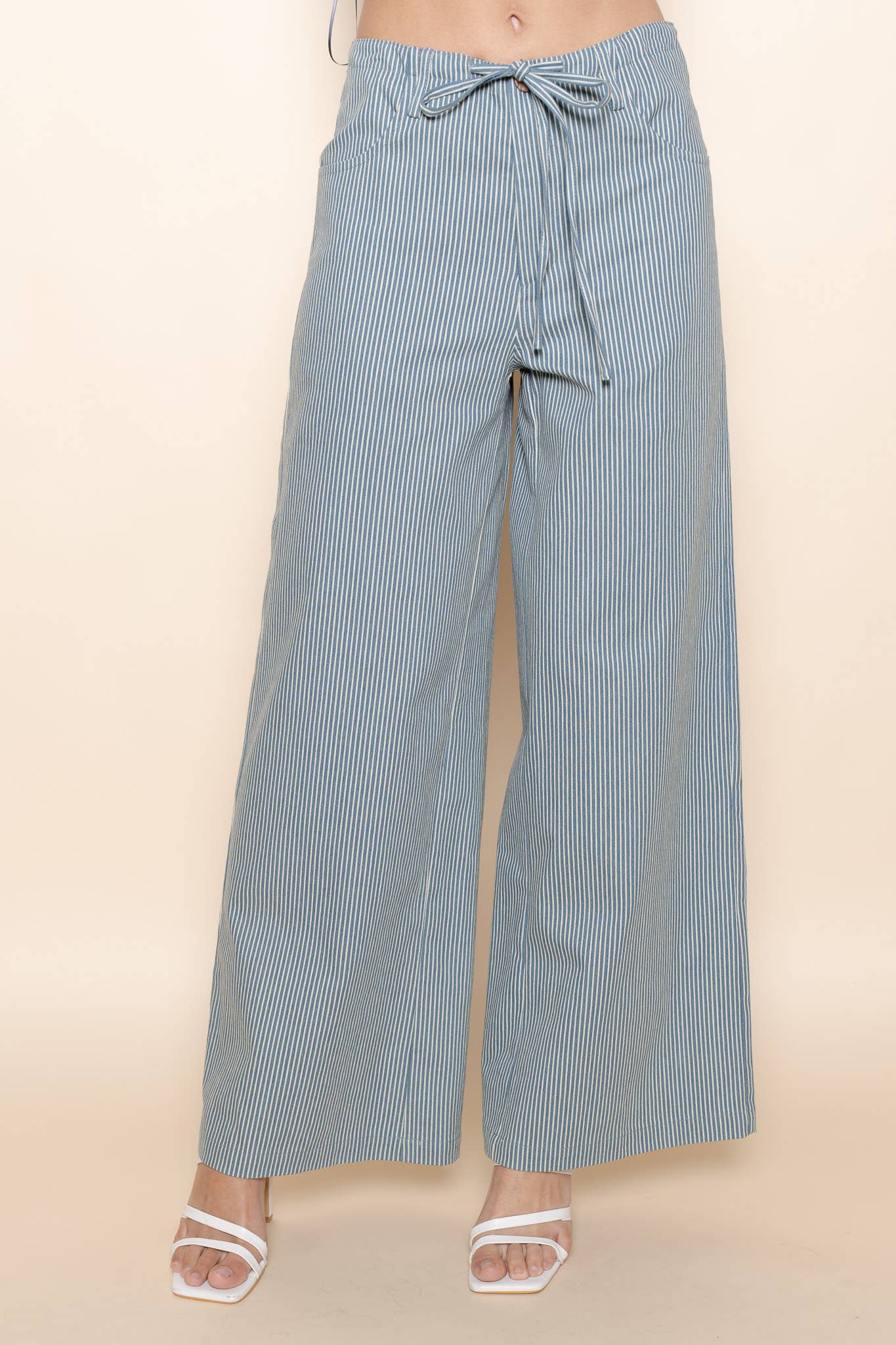 - COTTON GAUZE WOVEN FABRIC - LACE TRIM DETAIL - ELASTIC WAIST WITH DRAWSTRING TIE - SLANT POCKETS - LOOSE STRAIGHT LEG - FULL LENGTH MODEL IS 5'8" AND WEARING SIZE SMALL # spring, summer, casual pants, bottoms, boho, bohemian